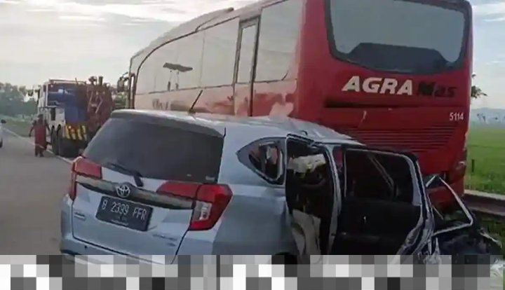 Kasat Lantas Polres Tegal, AKP Bharatungga Dharuning Pawuri, menyebutkan bahwa kecelakaan terjadi pada Kamis (19/3/2026) sekitar pukul 05.33. Mobil Toyota Calya tersebut menabrak bagian belakang bus Agra Mas.
